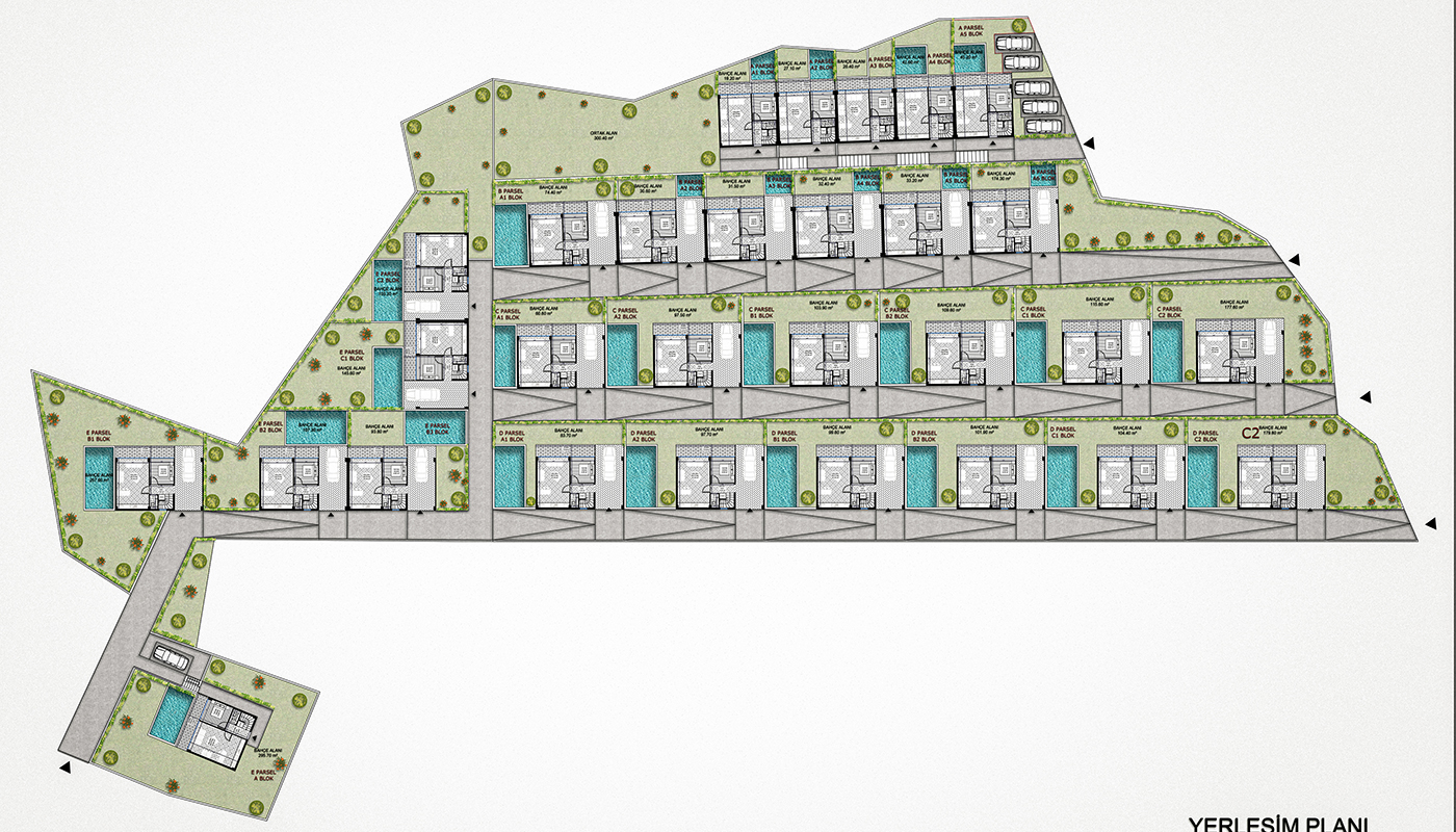 40 ila 306 m² arasında değişen bahçe seçenekleri